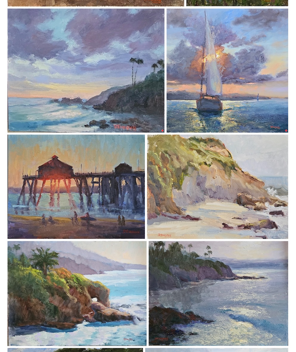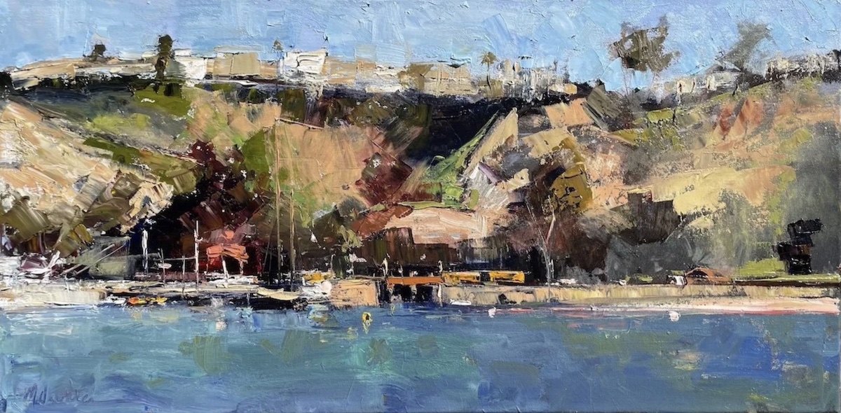 Mark studied painting beginning in Cape Cod, Massachusetts and attended Brandeis University for a BA in Fine Arts. He then earned an Master’s Degree at the University of Massachusetts, Amherst. Interacting with changing landscapes has informed his artistic vision. He is inspired by compelling compositions, early or late light, strong contrast, and carefully choreographed color harmonies. Mark strives to paint rapidly with loose spontaneous brushwork, in either with acrylics or oils, and in the studio or plein air. For many years, Mark has been an ongoing exhibitor at the Festival of Arts in Laguna. His artwork is held by numerous private and corporate collectors throughout the country.